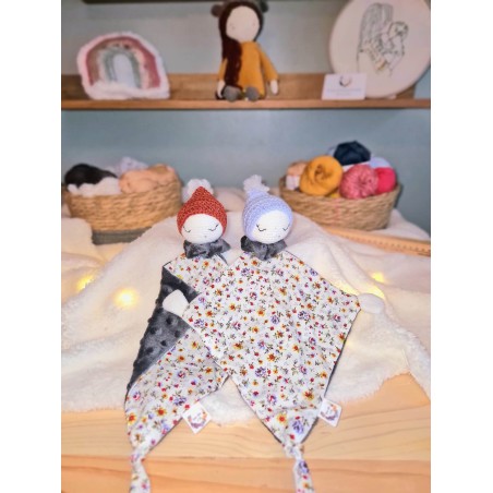 Doudou en crochet et tissus fabriqué à la main en France avec beaucoup d'amour. Chaque modèle est unique et original, c'est tout le bonheur du fait main.
