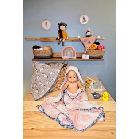 Cape de bain en fibre de bambou OEKOTEX 100 et biais en Liberty.