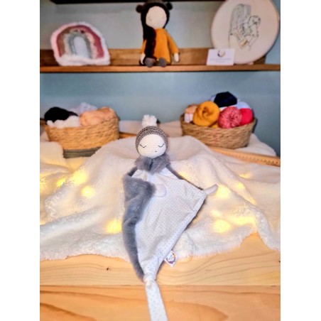 Doudou en crochet et tissus fabriqué à la main en France avec beaucoup d'amour. Chaque modèle est unique et original, c'est tout le bonheur du fait main.